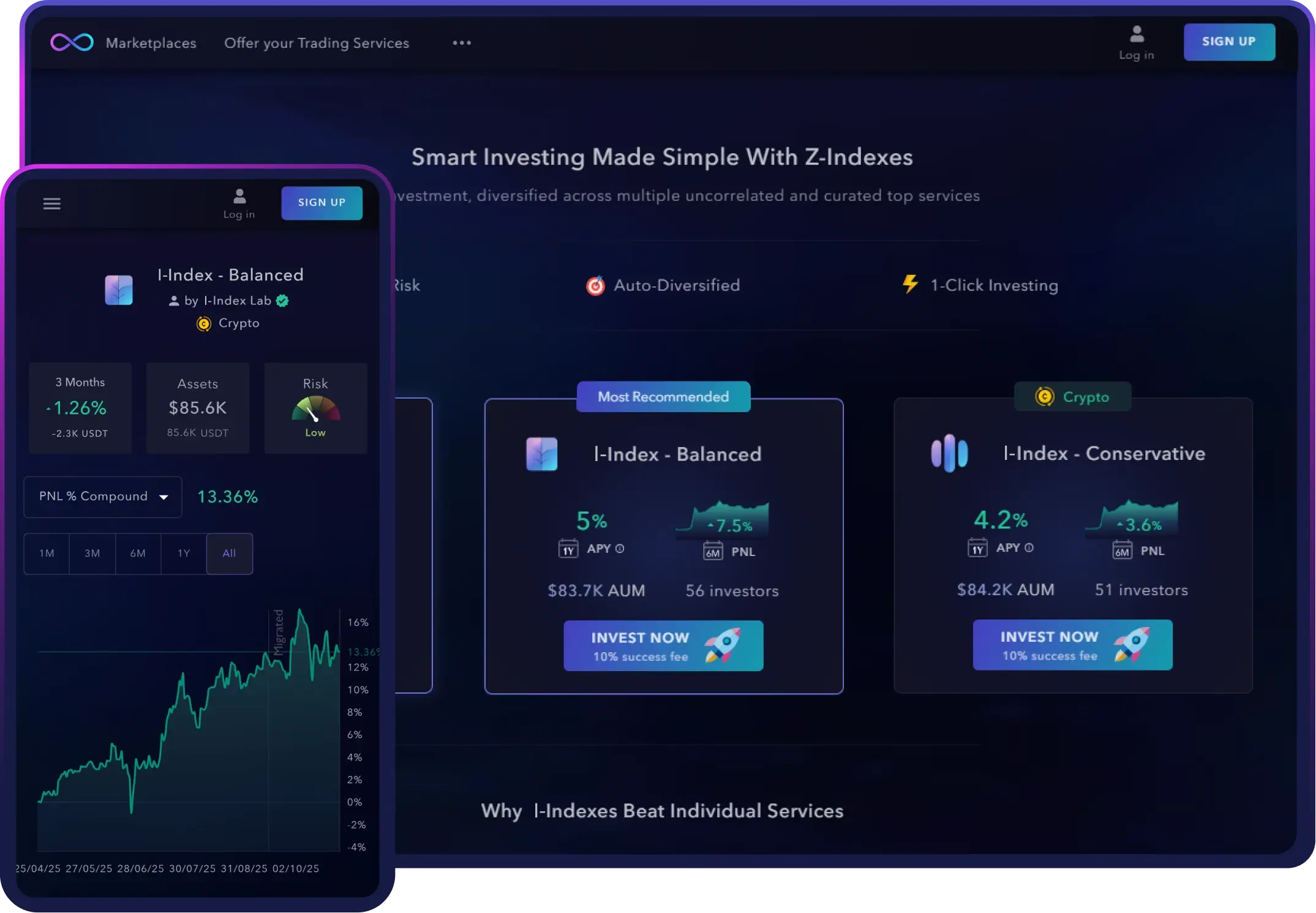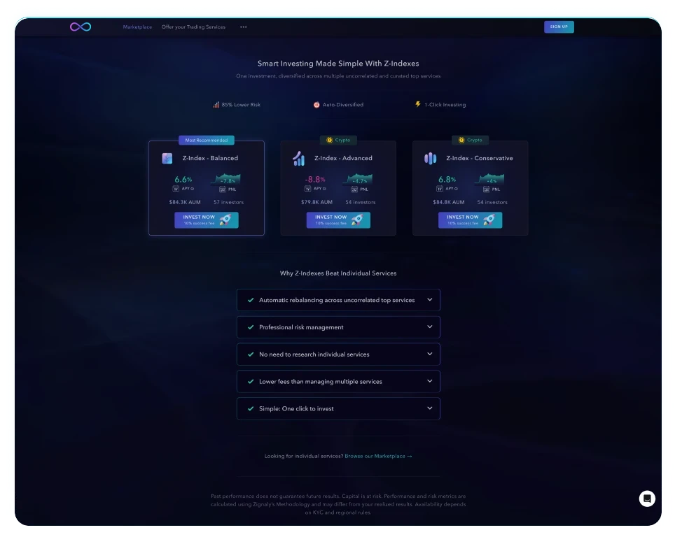 Sign up for free. Enjoy curated, uncorrelated Z?Indexes with no monthly fees and